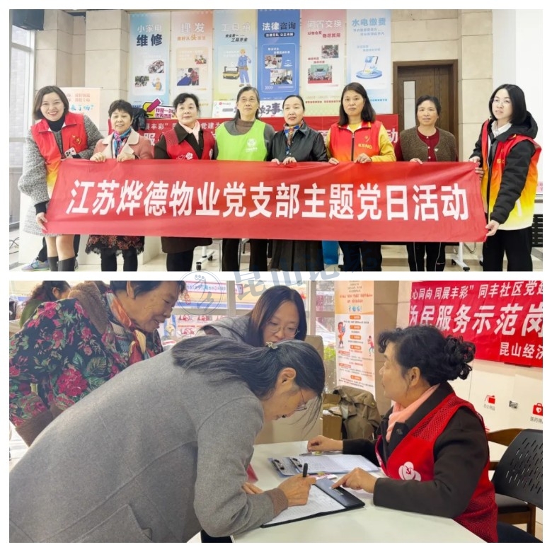 今年以来,江苏烨德物业党支部广泛听取业主建议,结合自身工作实际,以“办好业主事,走进幸福里”为宗旨,围绕“海棠红·幸福里”青江秀韵党群服务点携手同丰社区、青江秀韵业委会联建共建,扎实开展主题党日活动,打造更多业主可感、可知的幸福场景。