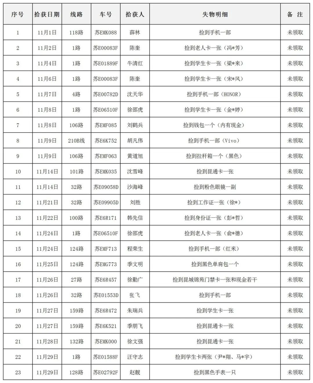 [正能量]【昆山公交正能量】11月职工中涌现好人好事113起,归还失物74件 [复制链接]