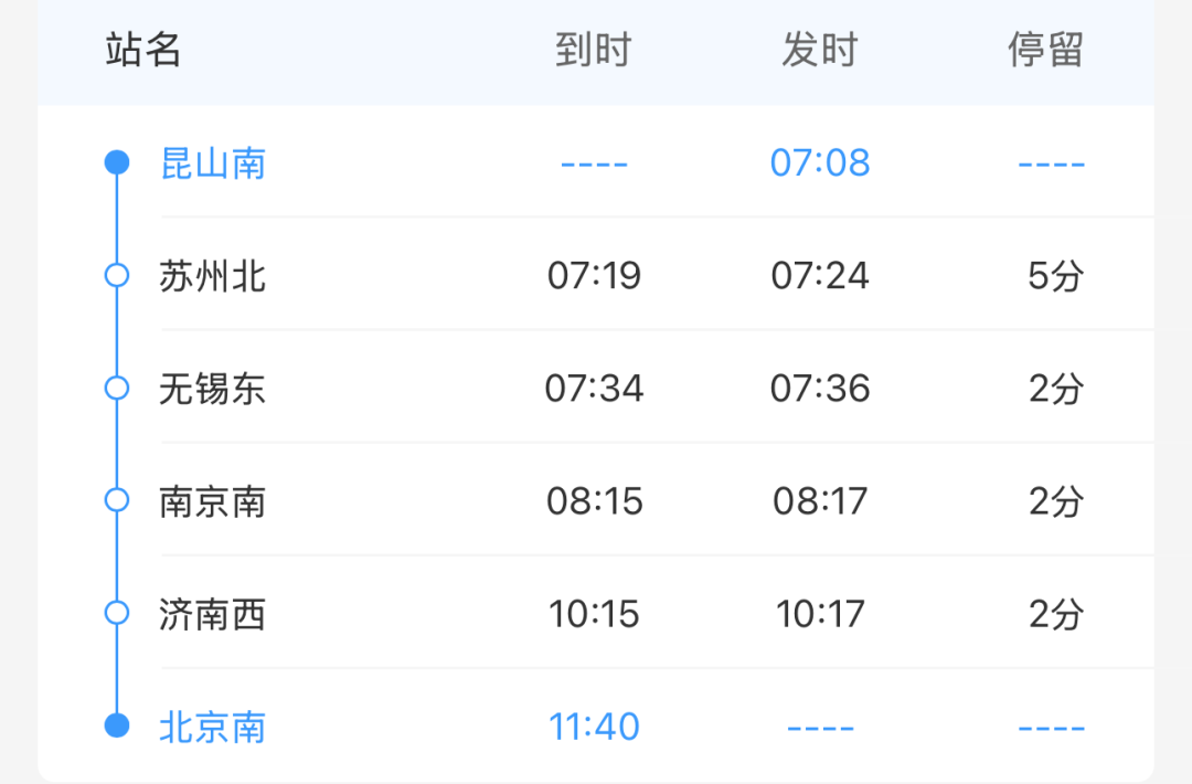 在市委市政府的支持推动下,昆山交通会同昆山南站与上级交通部门及铁路部门积极申请沟通,2025年铁路第三季度运行图调整后,自7月1日起,G4次列车将从昆山南站始发,停靠苏州北、无锡东、南京南、济南西等主要站点,全程运行时间约4.5小时,较其他车次单程节省约70分钟。