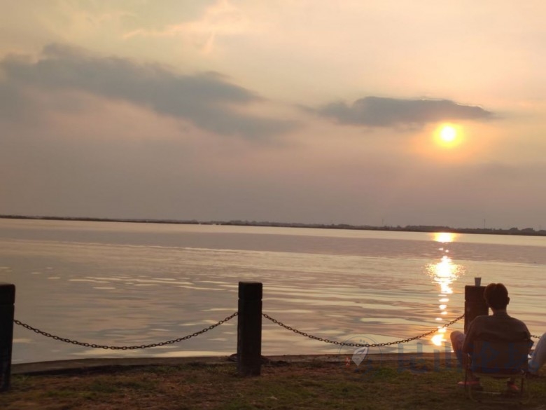 夕阳缓缓沉向湖心