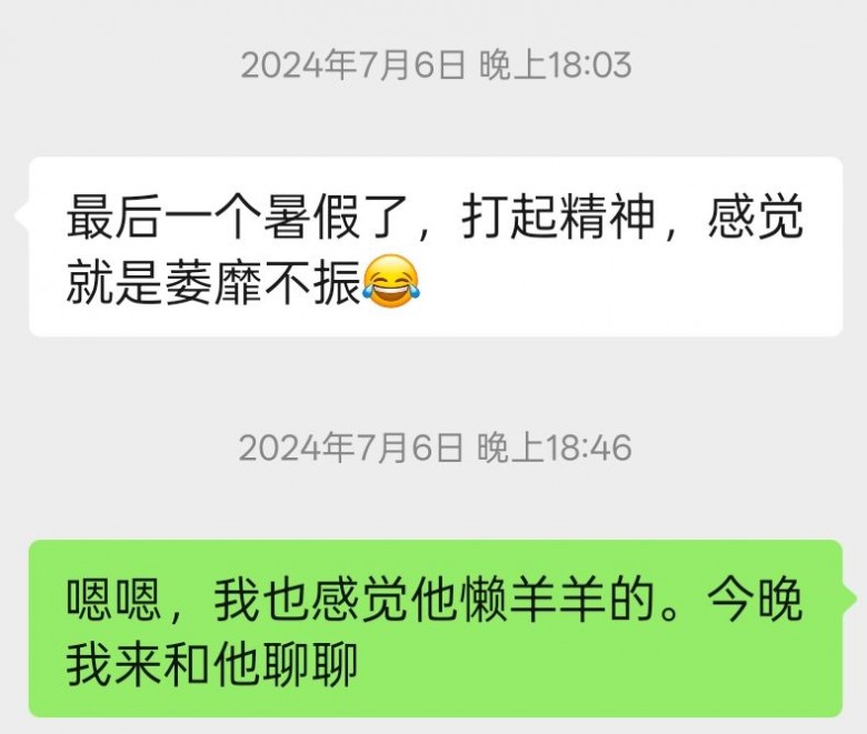 放暑假,高三又要分班了,好大儿20天暑假吧,也没啥计划远行,热和静待高三是重点。他先回奶奶家4天。这周让他去看望下姥姥姥爷,中间我想和他一起外出博物馆,图书馆,100%拒绝。全部就是,不去。他会自己计划。