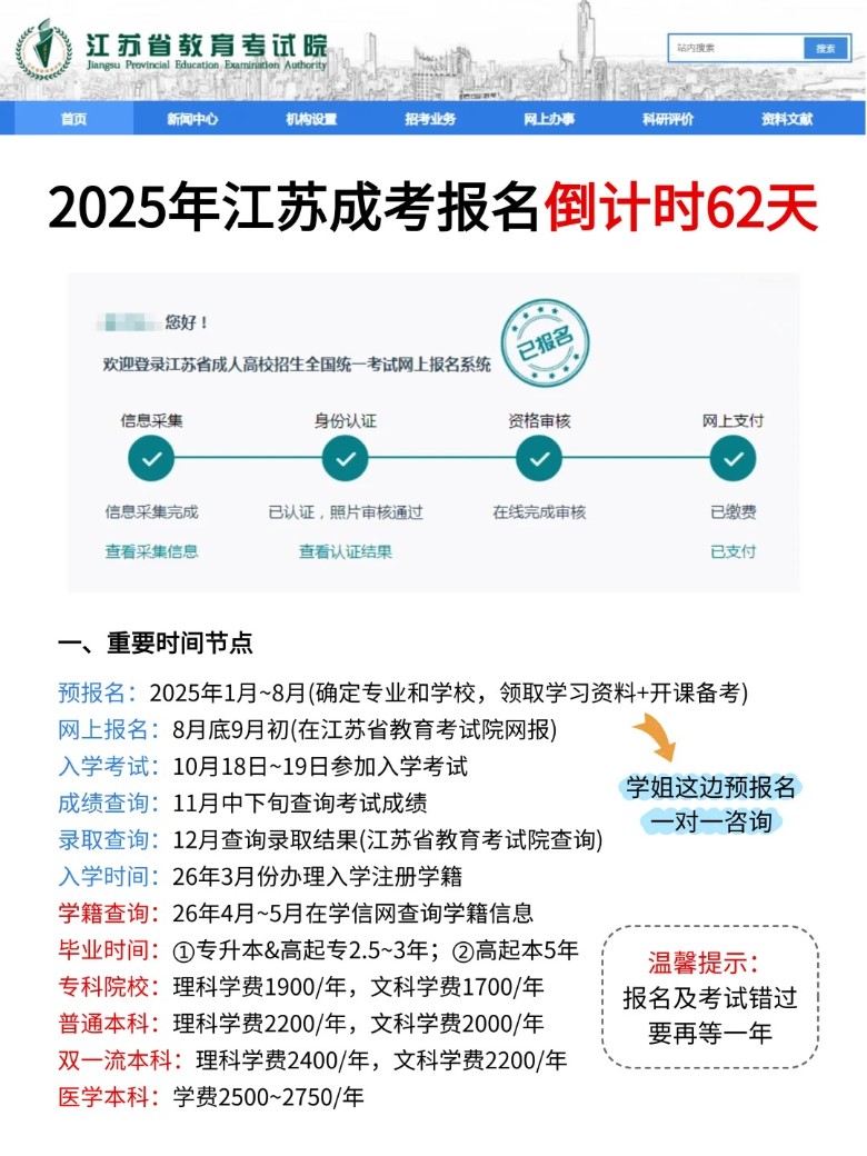 📝笔记整理了2025年江苏省成人高考报名流程及攻略、内容包括: