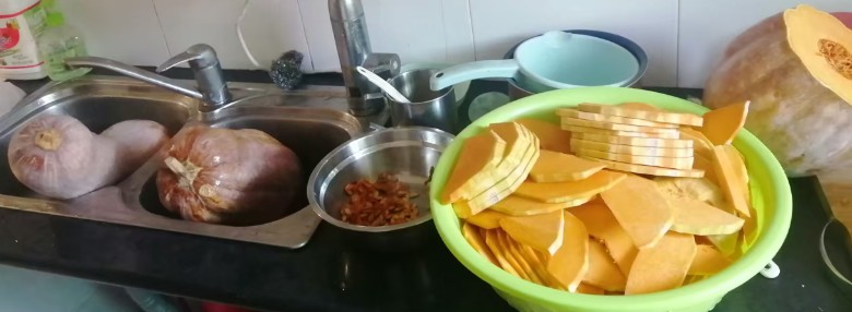 结果我回昆山来,我妈剁了12个南瓜做了南瓜干叫我带过来慢慢吃。