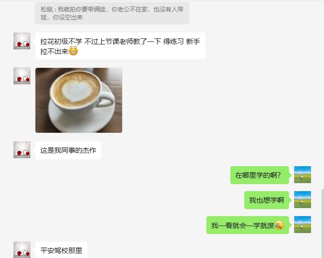 她说最近在学咖啡,等学好了给我做咖啡喝。