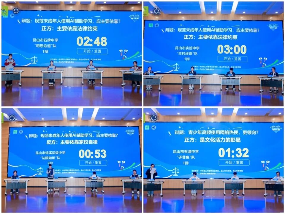 赛场上,辩手们逻辑清晰,一辩开篇立论精准破题,二辩三辩层层递进补充论证,四辩总结陈词升华观点,充分展现昆山青少年的思辨风采与法治素养。评委提问环节,辩手们从容作答、条理清晰,用法治思维回应质疑,赢得现场阵阵掌声。
