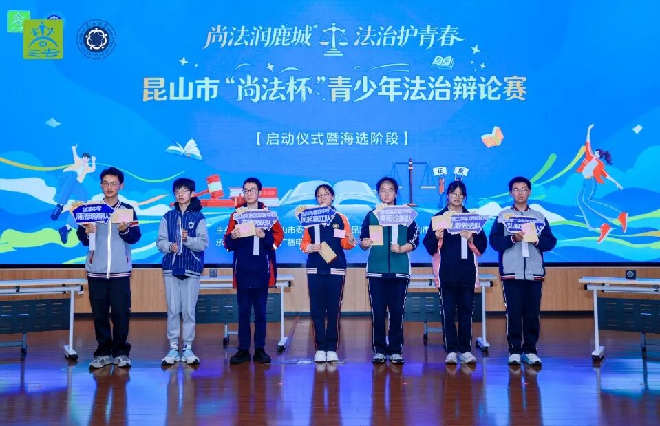 这是由昆山市委依法治市办、市司法局、市教育局联合苏州市广播电视总台倾力打造的昆山市首届“尚法杯”青少年法治辩论赛的海选现场,一场属于初中生的“法治超级杯”,在鹿城悄然鸣哨。
