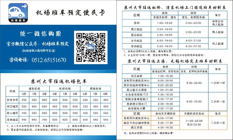 为了解决您来回奔波上海虹桥、浦东机场之苦,我们特别为您提供了专业周到的机场接送班车服务,先进的车辆调度和客户管理系统,保证每天准点发班,风雨无阻,我们提供的所有车辆都有正规的具有运营资质的车辆,每个座位都为乘客买了保险,请放心乘坐! 购票方式一:在线公众号购票(推荐)1、添加(长按二维码或扫描)并关注我们公司“机场班车预定”公众号;