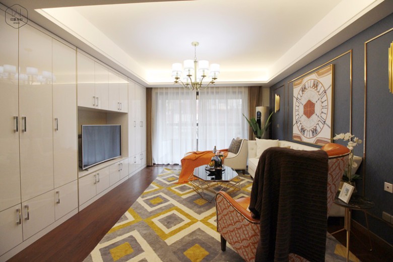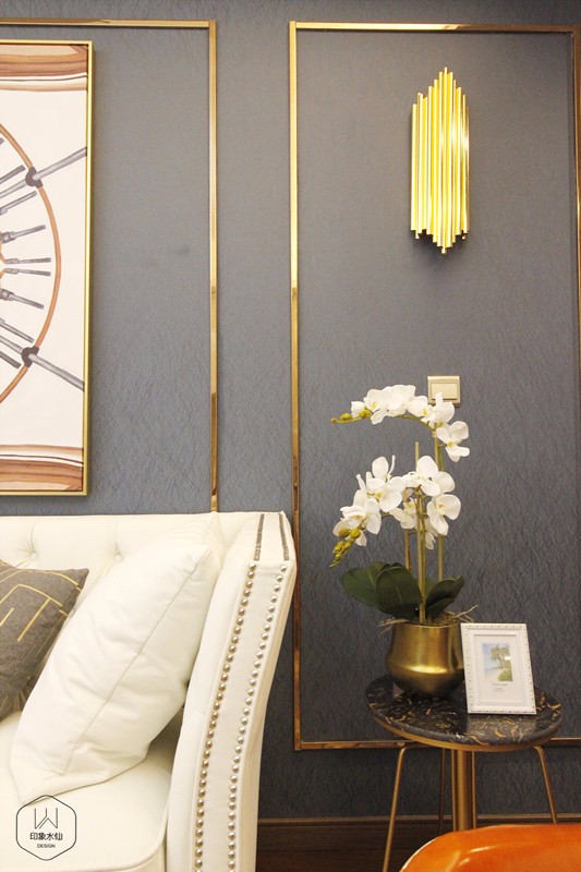 后期软装上用橘色作为整个空间的提亮色,从一些小的细节处都可彰显。