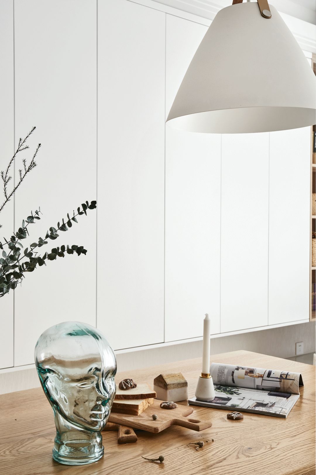 顶天立地柜往往让视线觉得拥堵,适当的破空,并放上品质小物,使空间更加通透。
