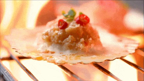 咕噜咕噜冒泡的蒜蓉烤扇贝,隔着屏幕都能闻到扑鼻而来的香气;炭火慢烤香味四溢的烤鱼,每一样都欲罢不能~