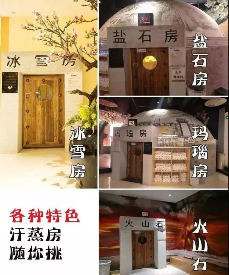泡完汤可前往各种功能的汗蒸房