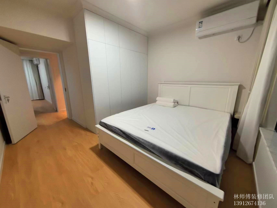 卧室也是以浅色为主,白色木质床搭配白色窗帘,呈现出一个干净简约的雅致居室。