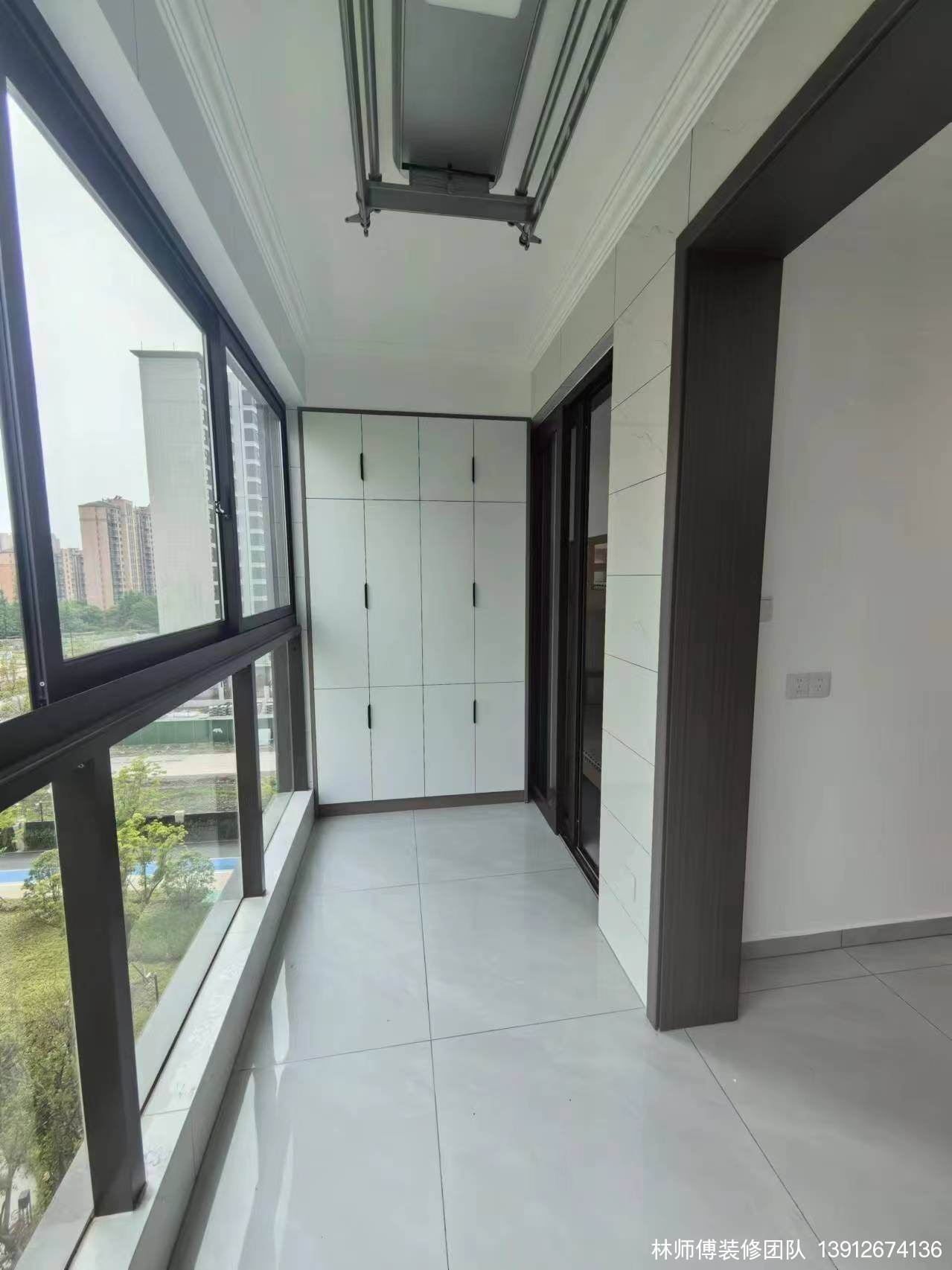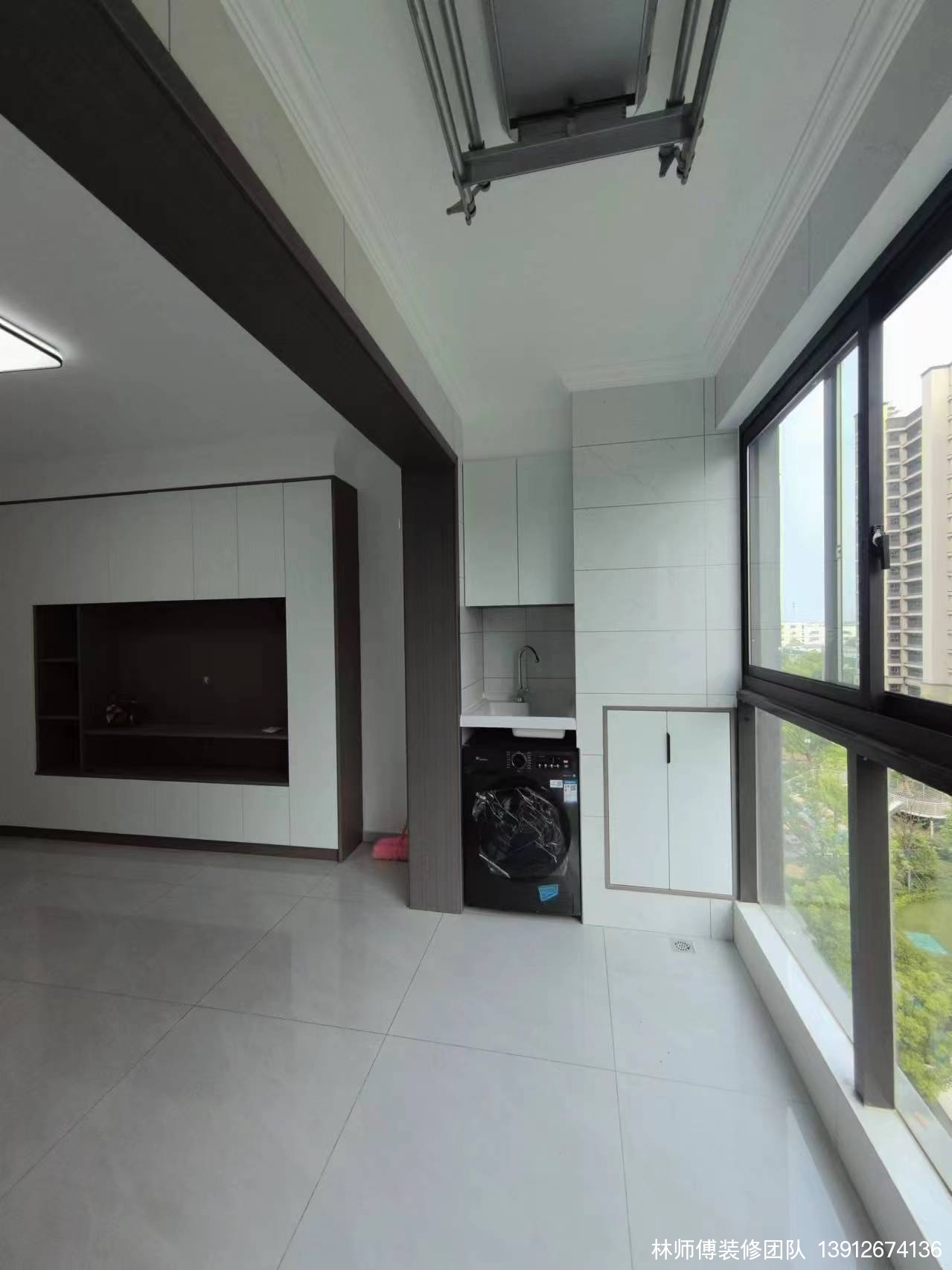 朝南的双阳台,拥有比较好的采光条件。客厅阳台规划洗衣区,配套水池、洗衣机等。房间阳台规划休闲区,设计了柜子辅助收纳外,后期再搭配上小圆桌、椅子、绿植等,很是惬意!