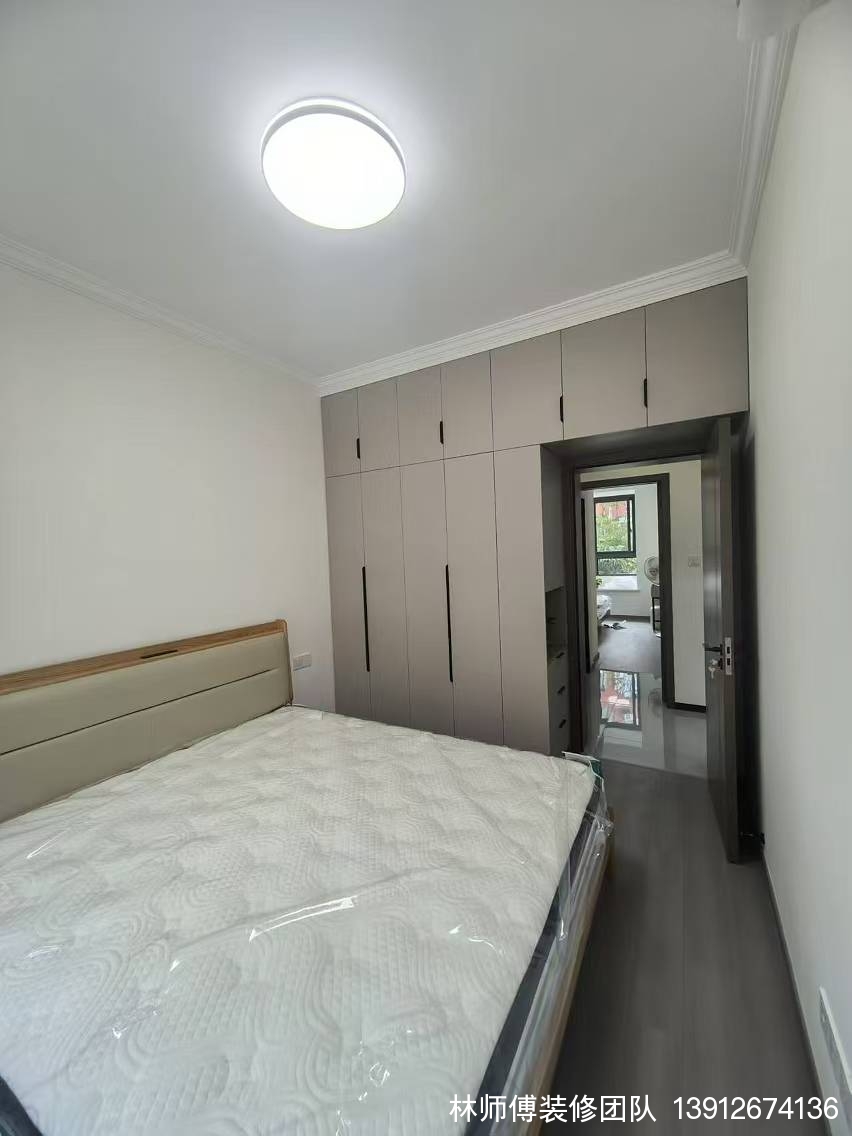 次卧的设计偏向简约,多功能衣柜的收纳也是杠杠的。房间的地面都铺设了木地板,舒适感会更强哦~