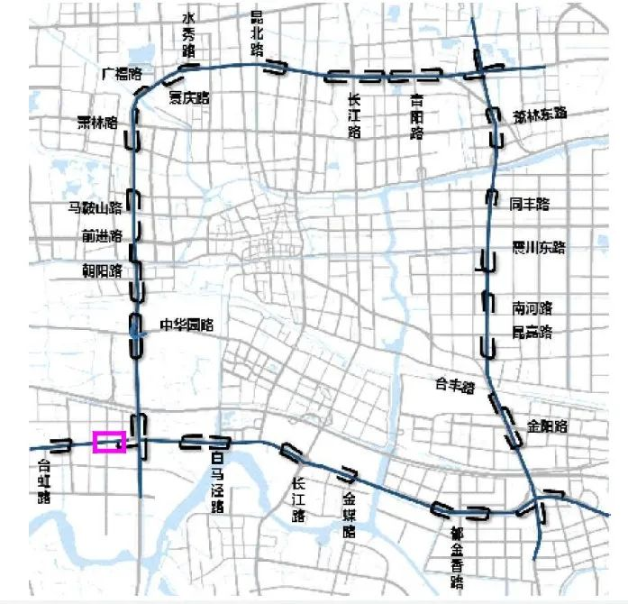 ●中环西线马鞍山路北向南下匝道口高架段封闭(引导车辆从马鞍山路/前进路驶出)