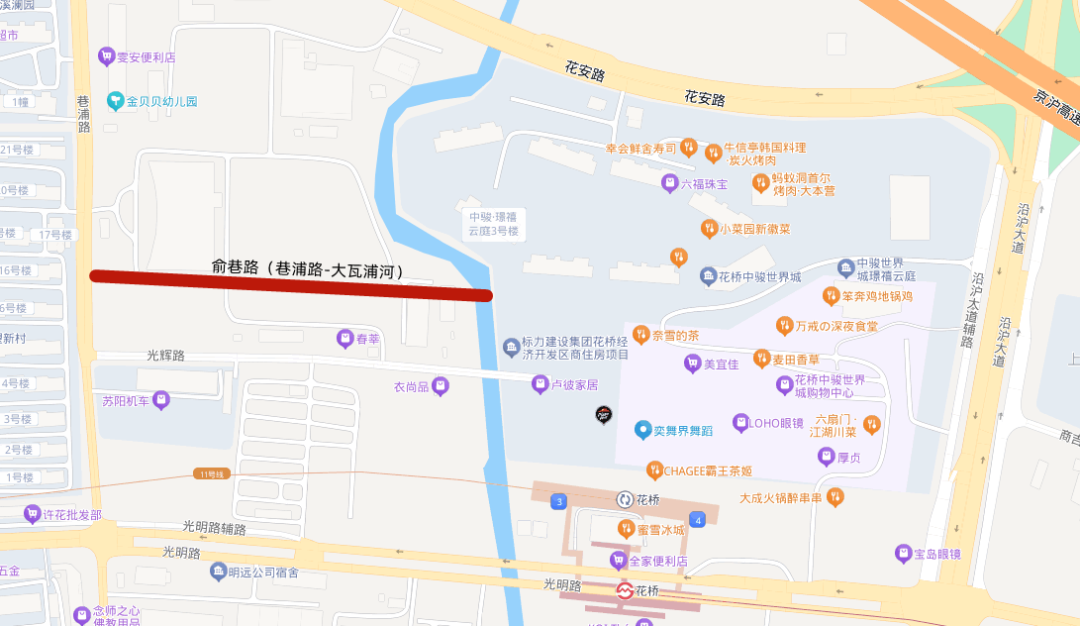 3、南向北进陆家方向的车辆可从元丰路转南江路或富荣路通行;也可从中环东线童泾路匝道方向转童泾路通行。