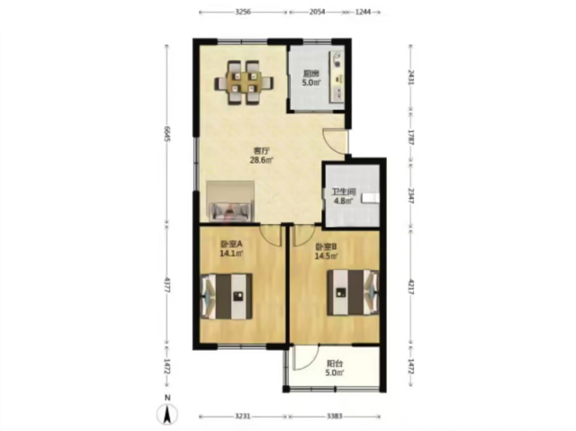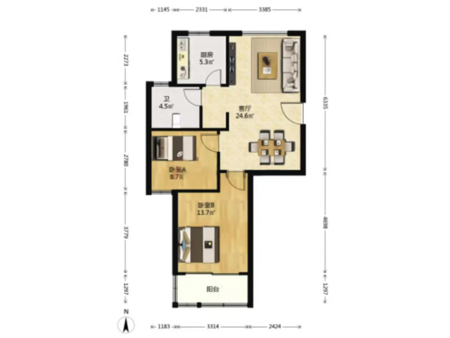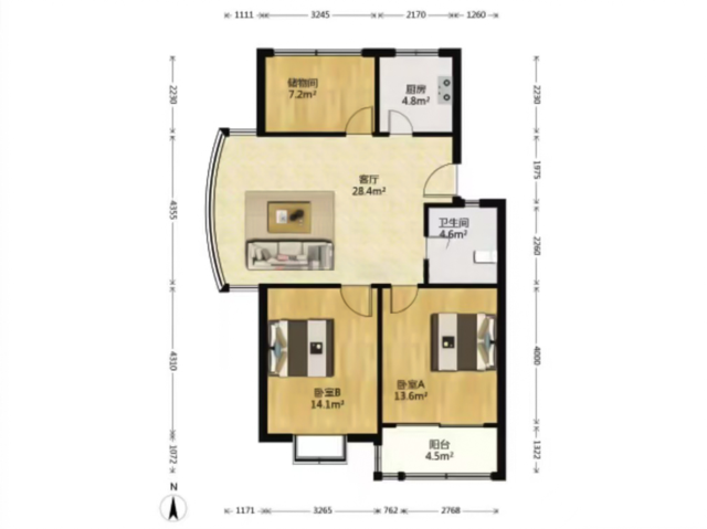 双阳台配置,一个作为生活阳台洗衣晾晒,另一个可作为观景阳台。北面房间可按需设计为书房或客房,互不干扰。