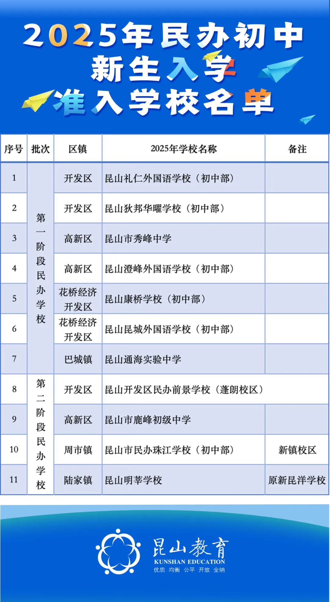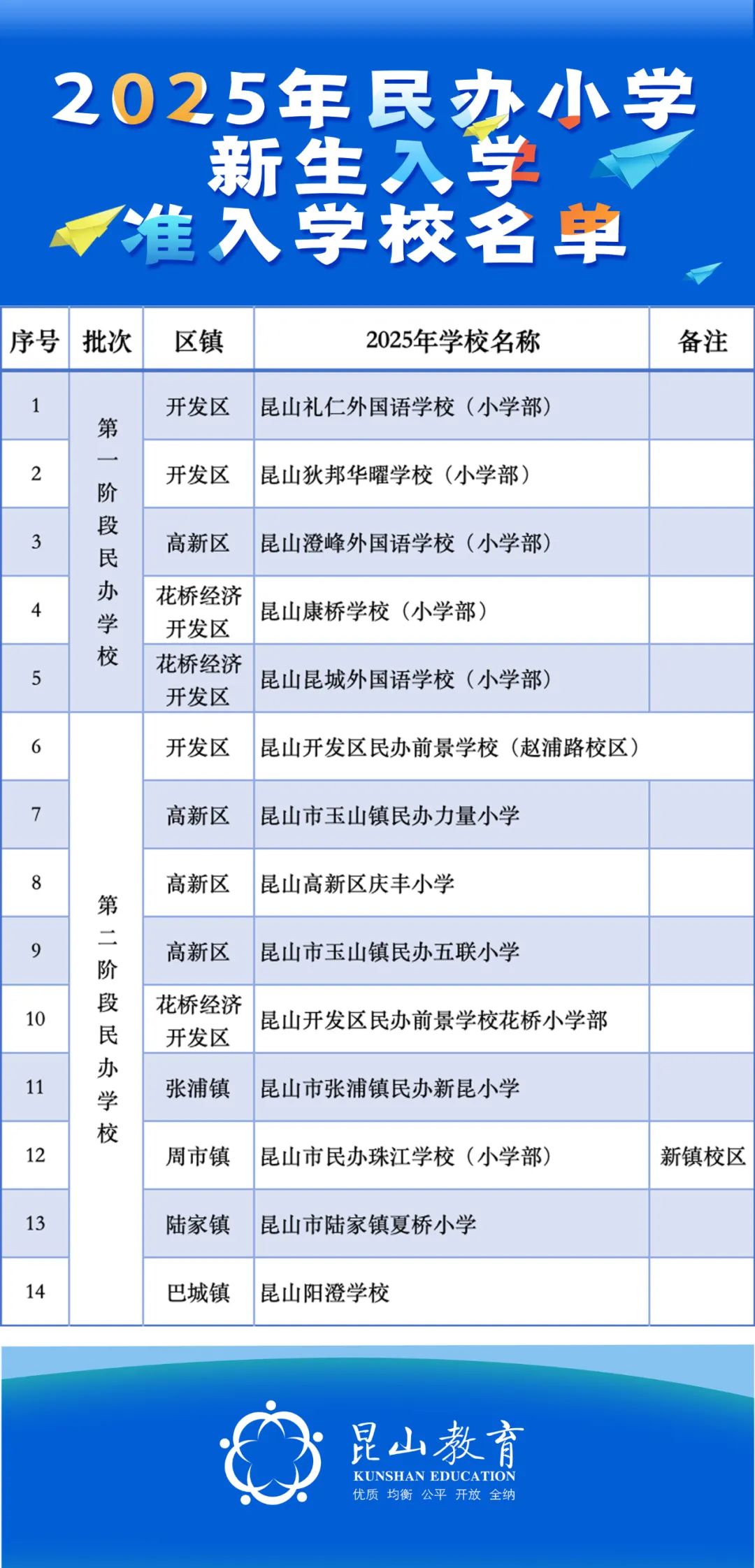 经与区镇会商,确定2025年昆山市义务教育阶段民办学校新生入学准入学校名单,现予以公布。