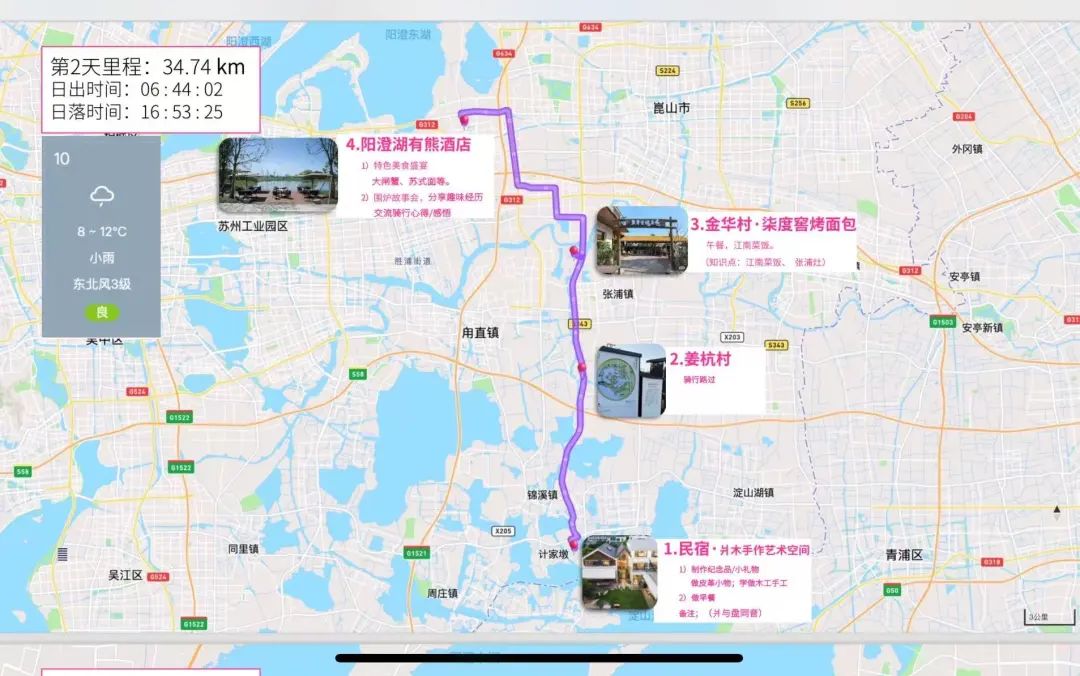 🚴民宿·爿木手作艺术空间→姜杭村→金华村·柒度窑烤面包→阳澄湖有熊酒店