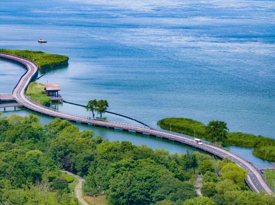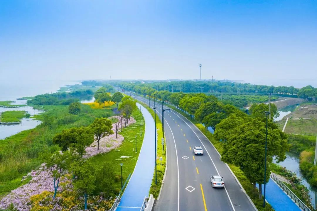 进入阳澄湖骑行环线,继续环湖而行,湿地的自然风光秀美怡人,湖畔生机盎然,眼前的一切都诗意而烂漫。