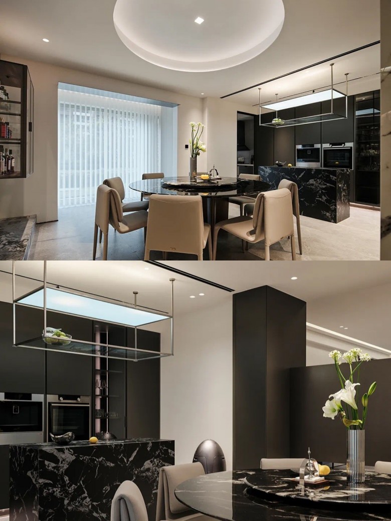合理的动静分区对于居住体验很重要,将客厅、餐厅这些公共活动区域跟卧室、书房进行动静分离,这样既保证了生活的互动性,也确保了休息区的私密性。