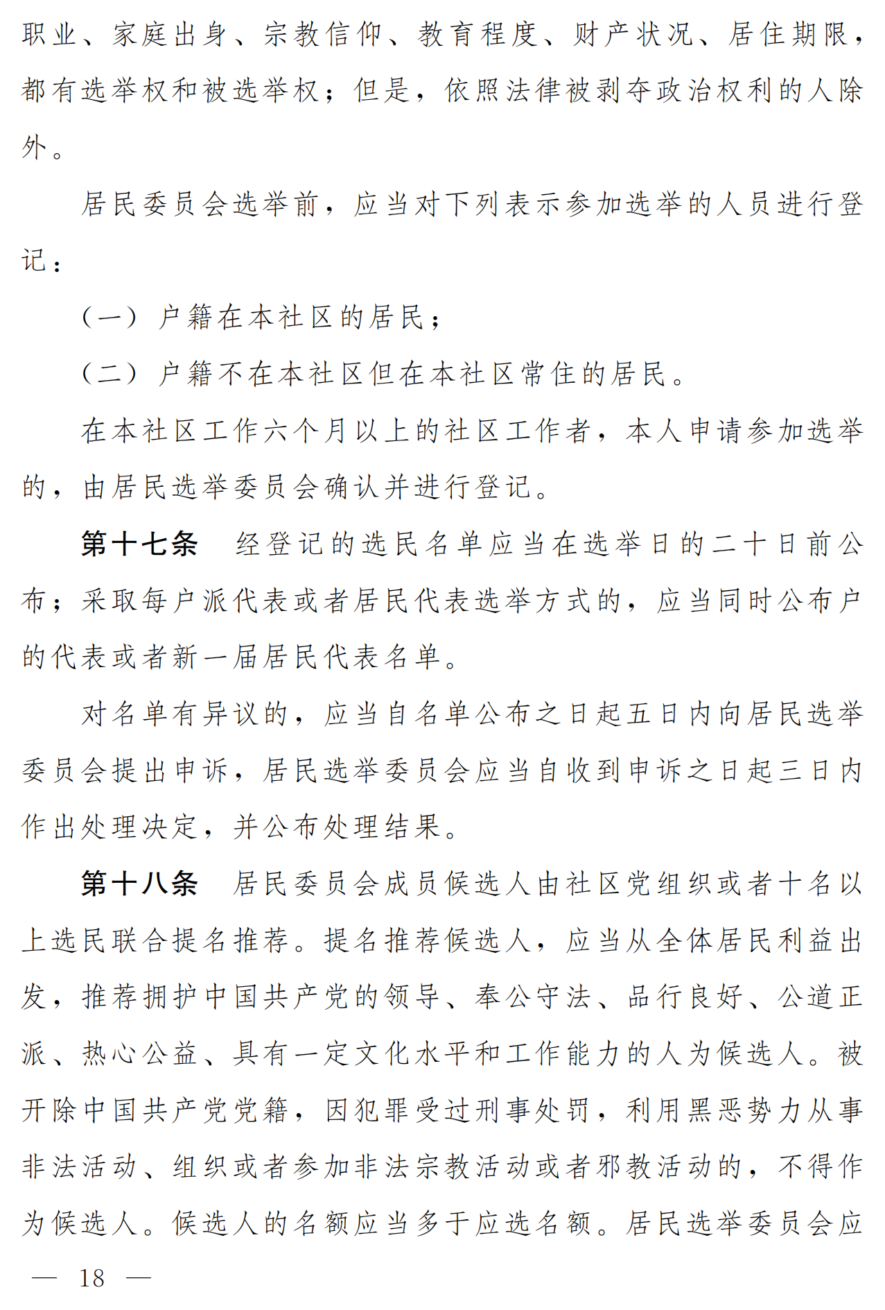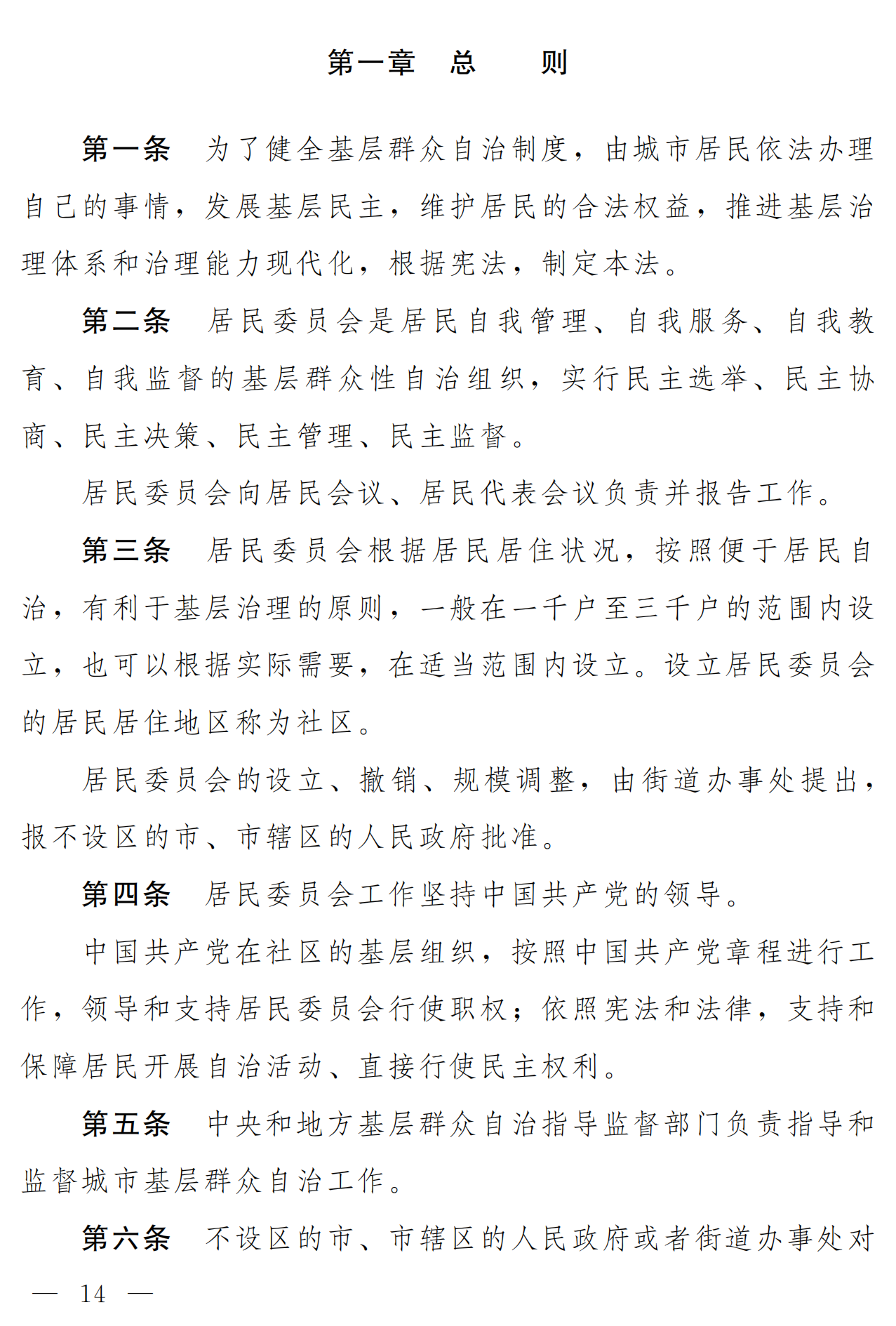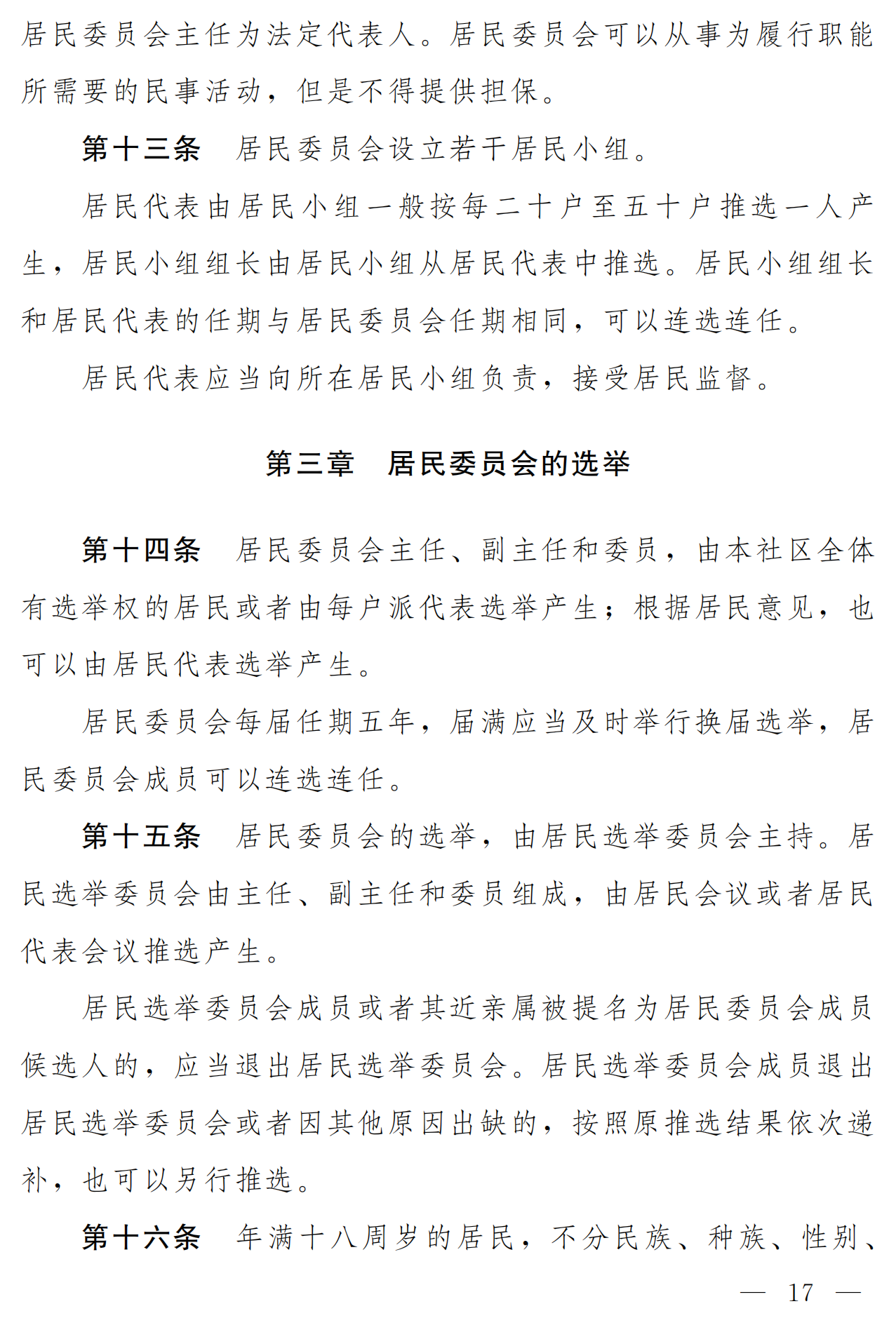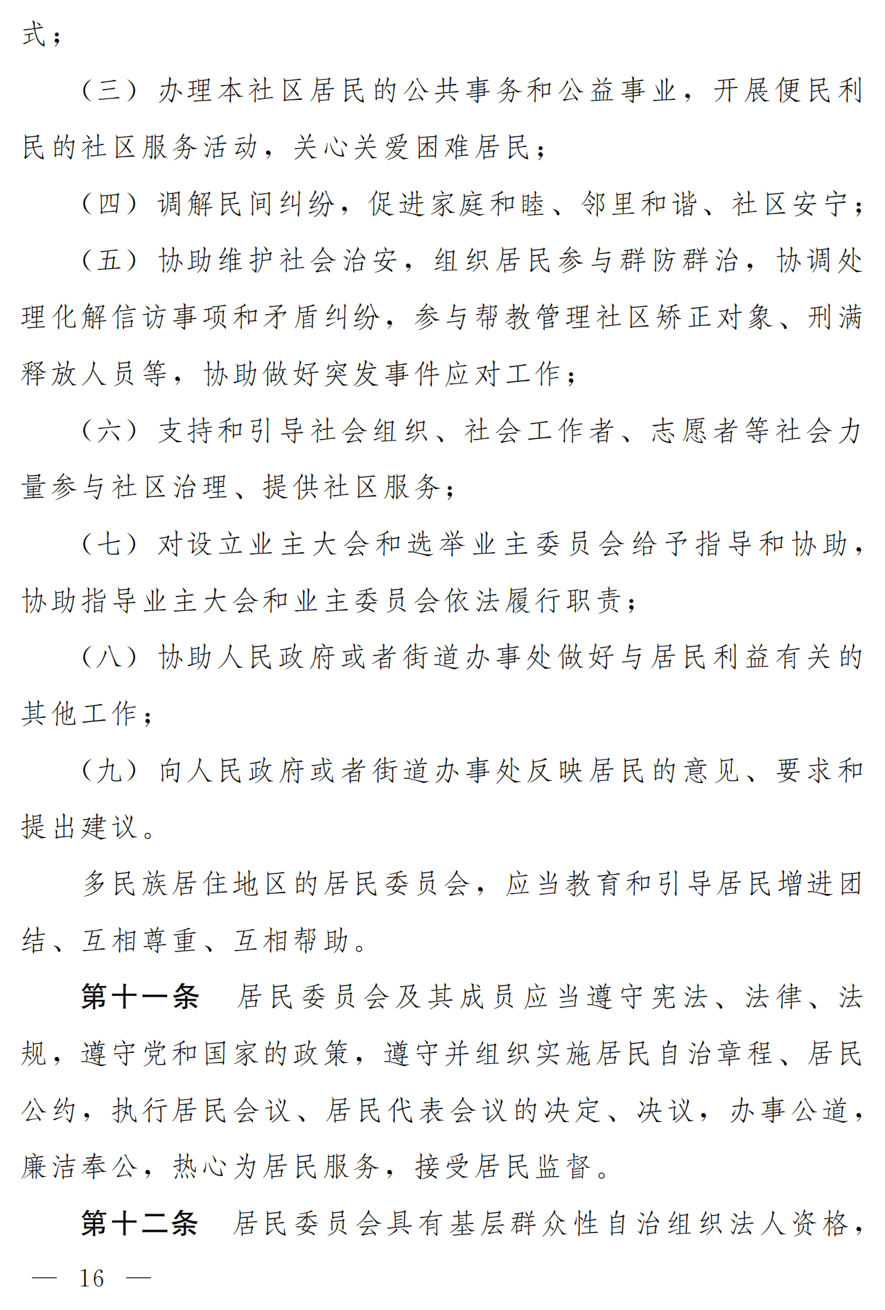 《中华人民共和国城市居民委员会组织法(修订草案)》