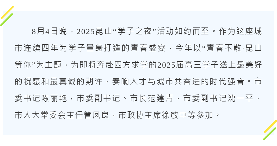 是学子表达热爱与梦想的舞台,学生们用歌声诠释昆山青年的蓬勃朝气及对家乡的眷恋与自豪。