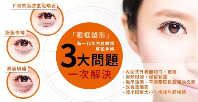 【东方美人5D眼框塑形】新一代全方位的眼袋移位手术,从眼睛内部切开,进行脂肪下移,一次性解决下眼袋脂肪重组矫正+筋膜修补+泪沟填补三大问题!