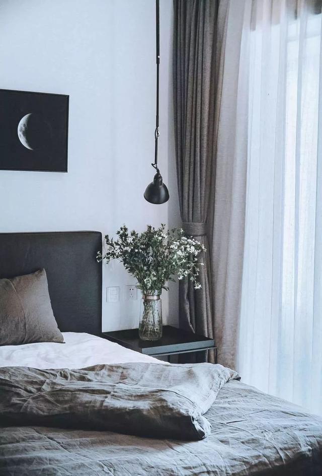 窗帘可以选择淡色系的,巧妙地弱化其存在感;装饰画也不必太过亮眼,让设计最大化地凸显生活本身。