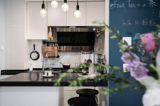 吧台作为厨房和餐厅的区域划分,同时也实现了屋主吃早餐、喝咖啡的需求,也增加了厨房的功能性和储物量。