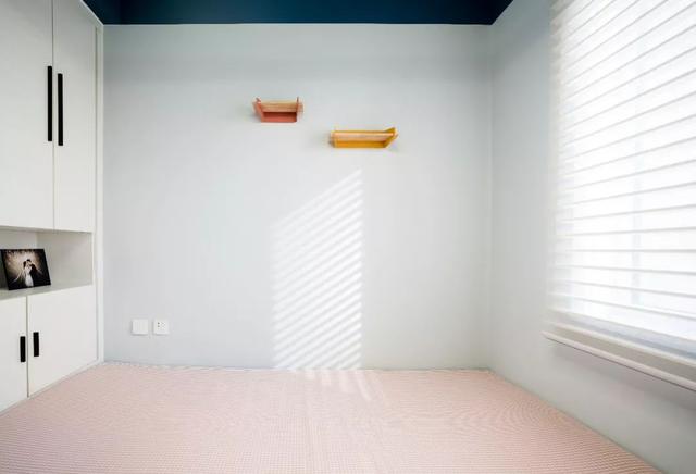 百叶帘的好处就是可以让光变的有了形状。榻榻米上做衣柜要注意一个小细节,在衣柜的正面做一块固定的封板,封板的高度根据榻榻米垫子的厚度定,一般预留出50mm-100mm高。