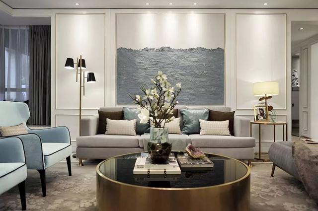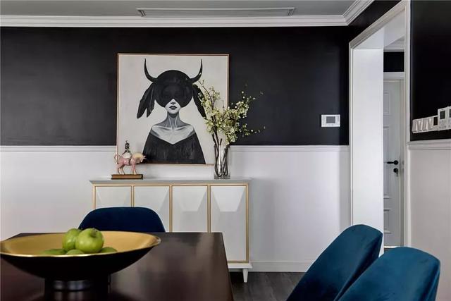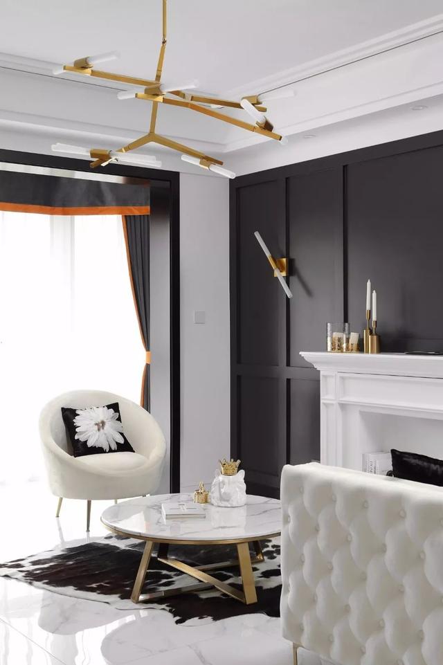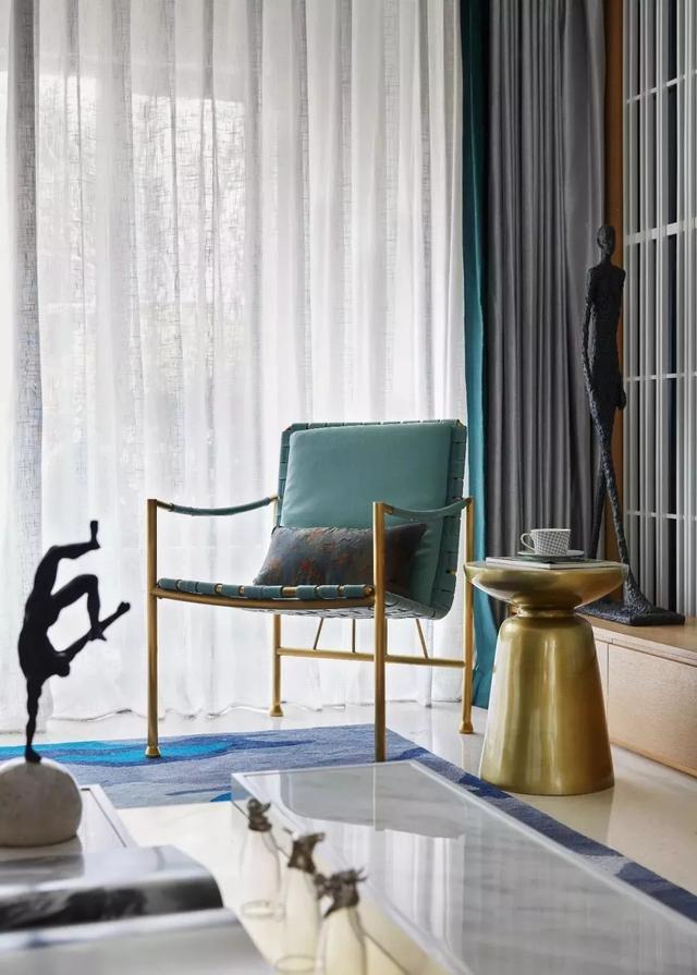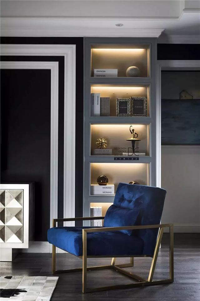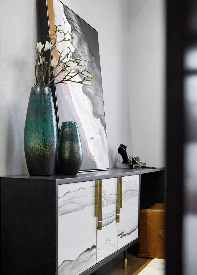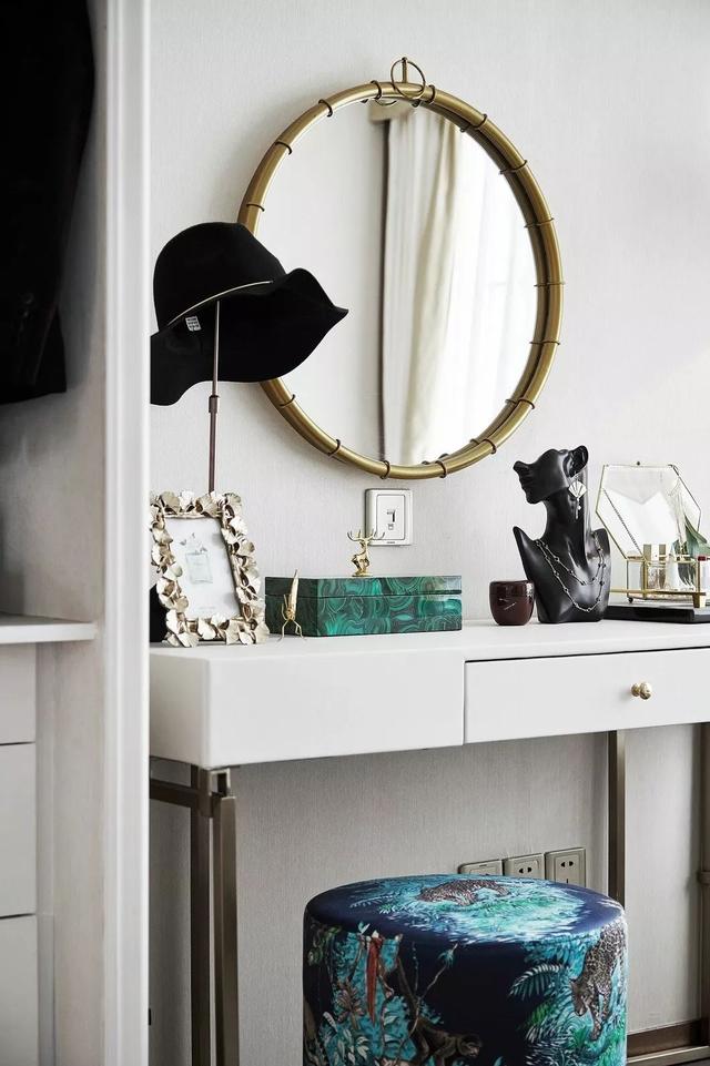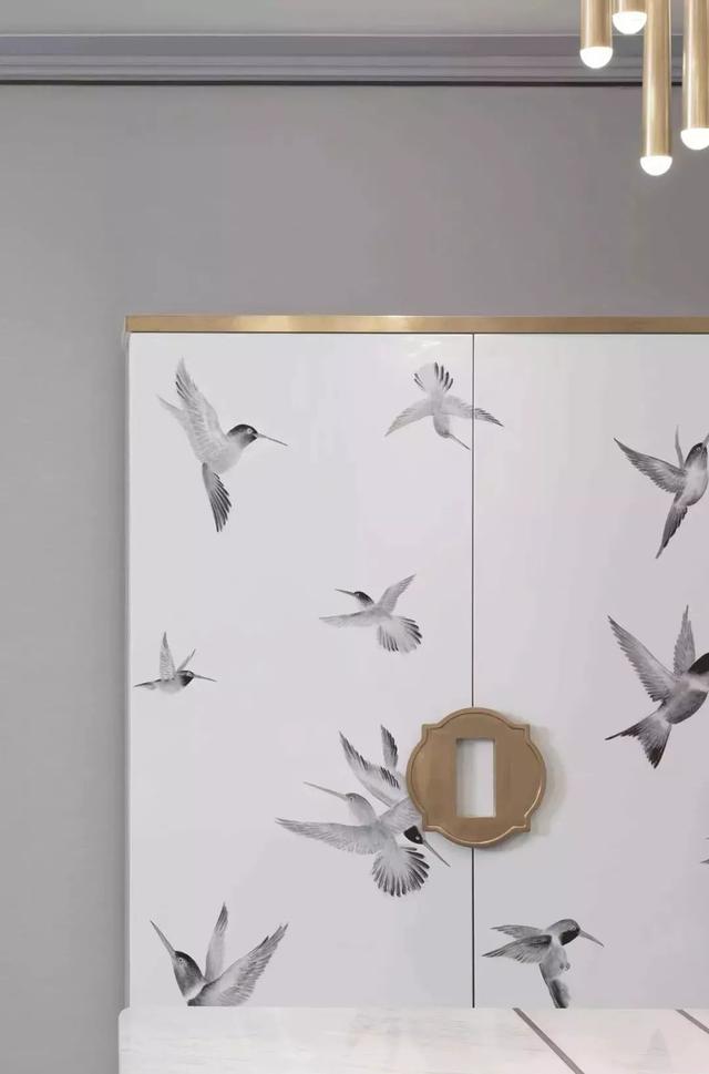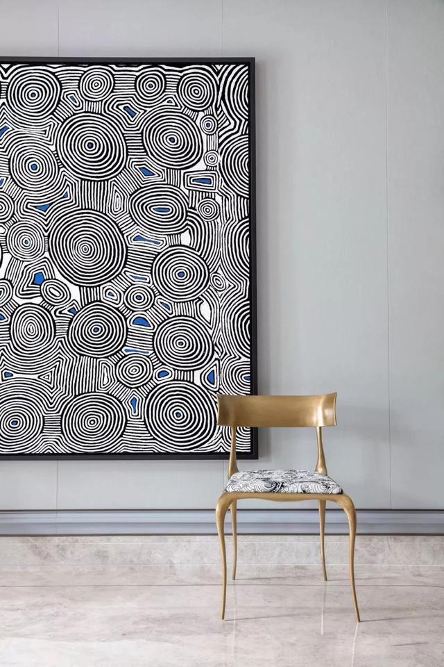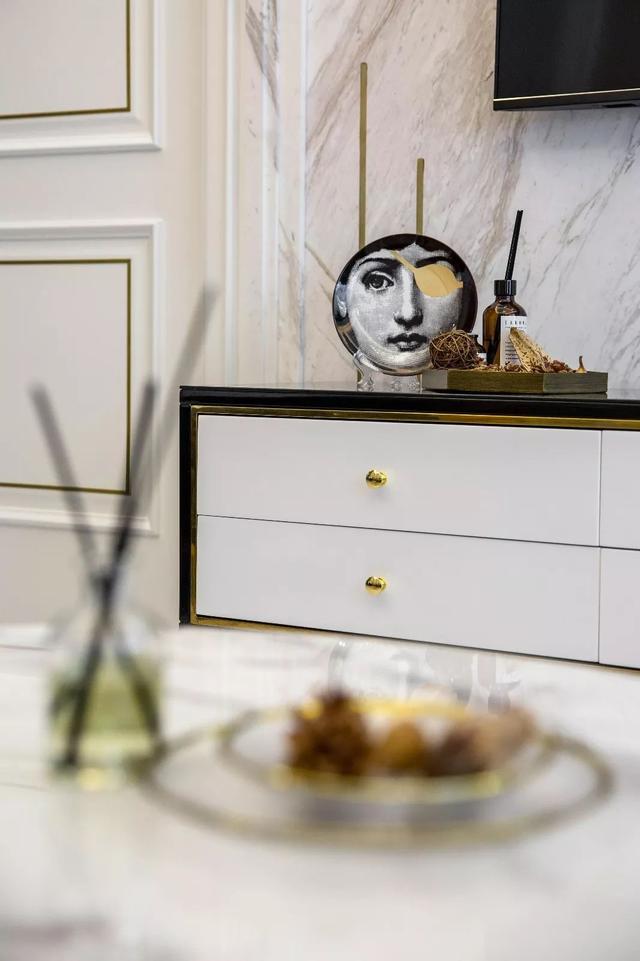 不过,黄铜作为一种独特的装饰元素,多以少量点缀的形式出现。各种造型别致的画框、柜门把手、细脚椅等,让空间充满奢华格调,更具优雅大气的视觉体验。