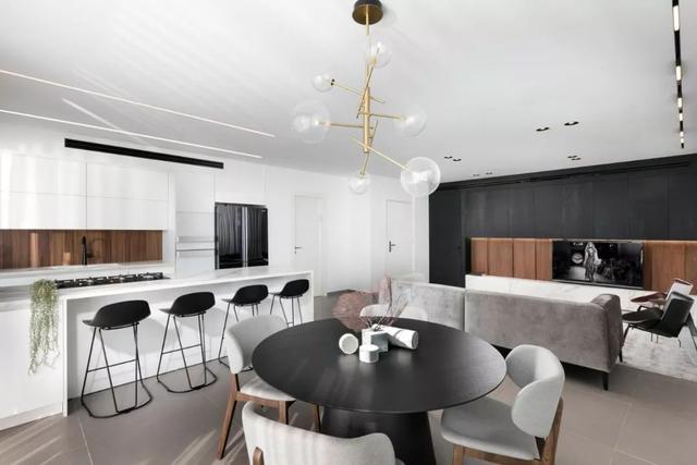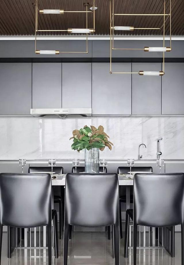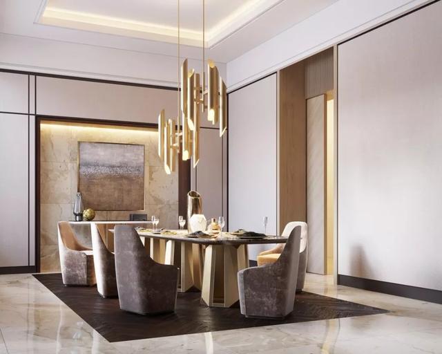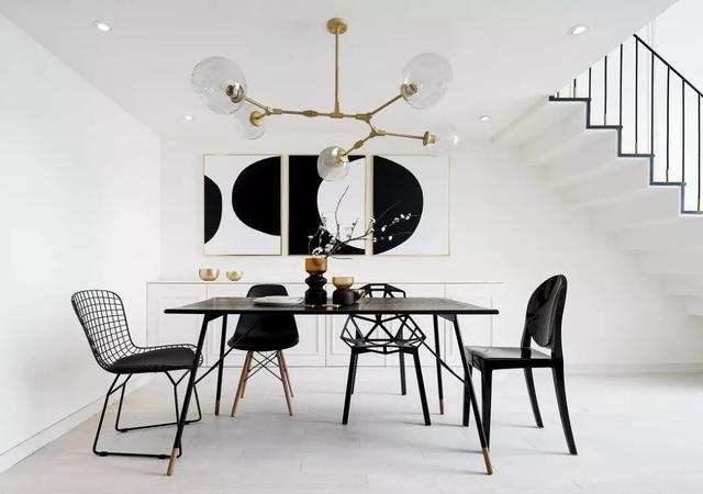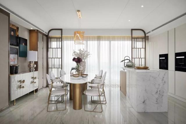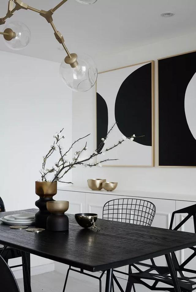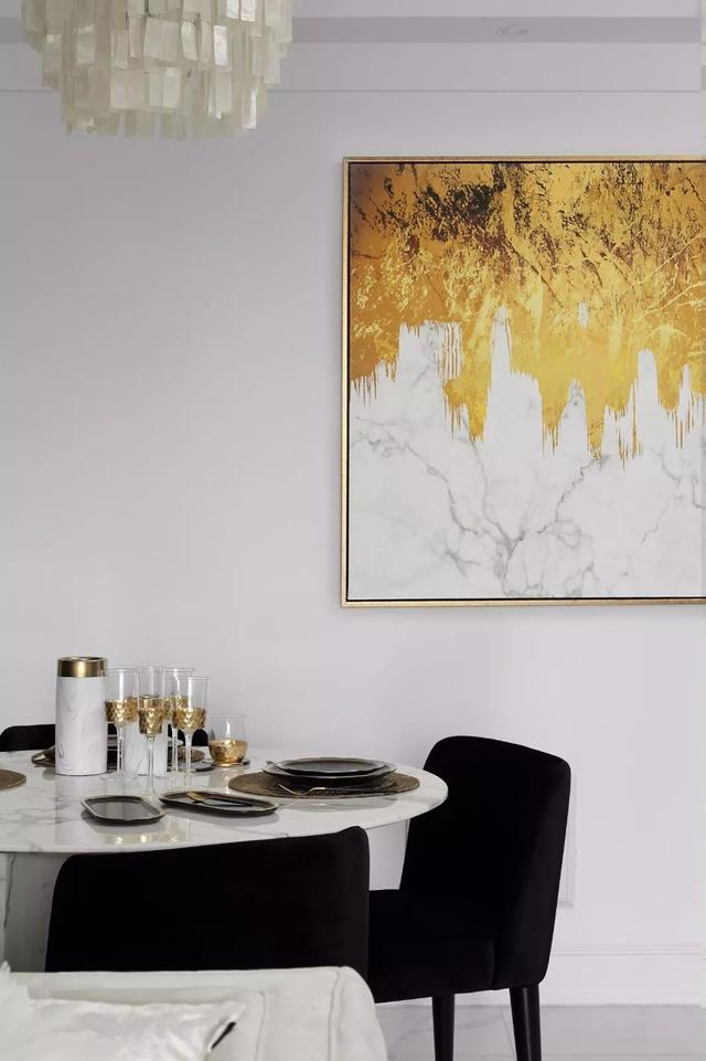 熠熠生辉的金色,可为平淡的空间增添几分温暖质感。在室内设计中,设计师往往利用黄铜的特殊材质和光泽,来提亮客餐厅的整体色调,使之变得更加活泼有趣、温暖灵动。