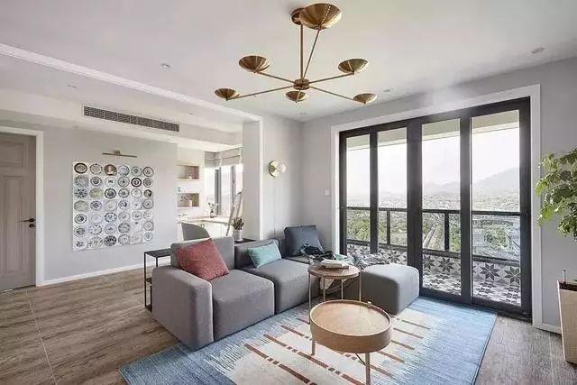 客厅落地门并没有搭配窗帘,住在顶层就是不想浪费屋外动人的风景。