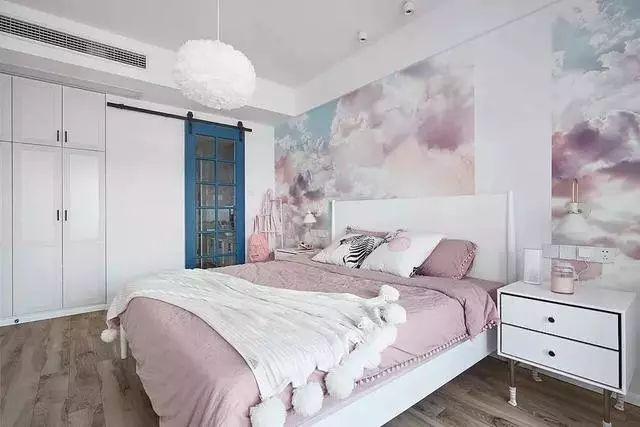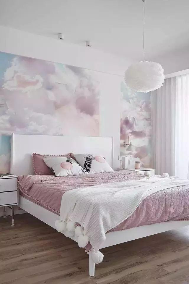 白色床体铺上粉色床单,充满现代优雅的气息。