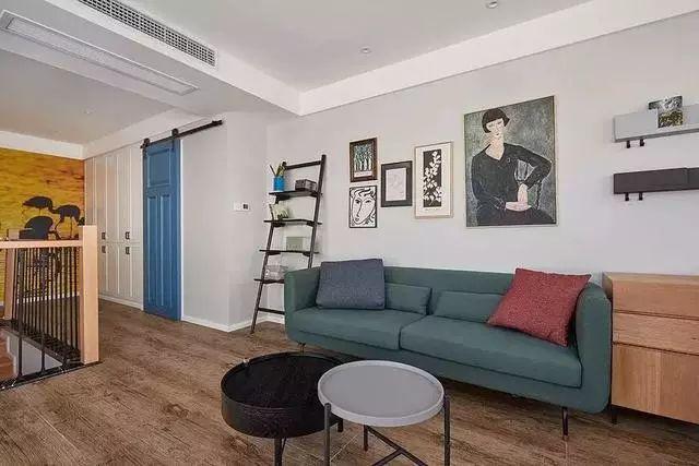 沙发背靠矮搁架和墙面,保证沙发有所依靠,又保持了开阔空间的通透感。