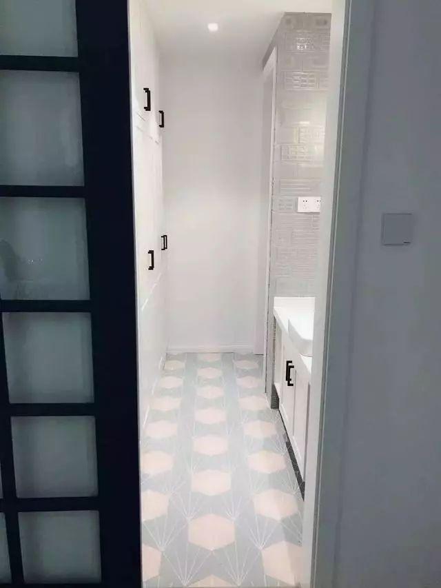 卫生间地面和墙面都选用了别致的砖色,看起来有点小梦幻。