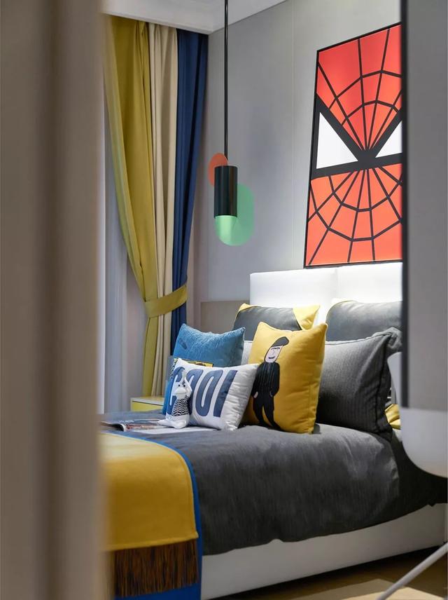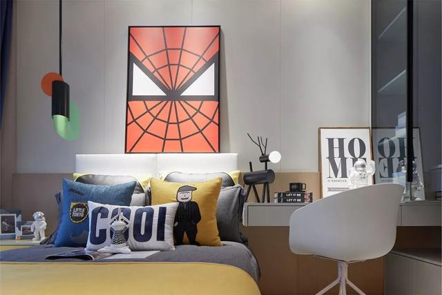 儿童房延伸的青春的气息,独特的太空人摆件,萌动的动物灯饰,超级英雄的艺术挂画,个性化的柔软床品,活泼生动的色调呈现这个年纪孩子的性格特质。