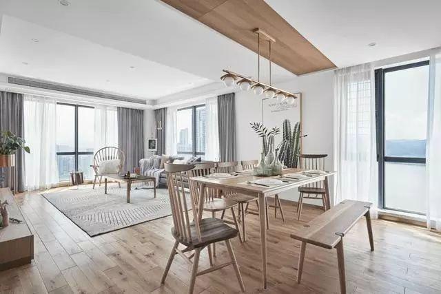 客餐厅一体的设计,与窗外的视野和采光融合的非常好,窗里窗外都是景。
