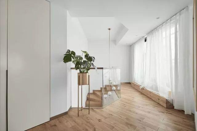到达二楼的楼梯平台,纱帘微垂,微风徐来,带着纱帘舞动的画面。身心愉悦放松,无异于是海边度假般的体验。
