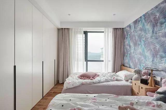 出于为孩子的安全考虑,以两张一样大小的儿童床替代双层床设计,也更有利于两姐妹之间的感情交流。