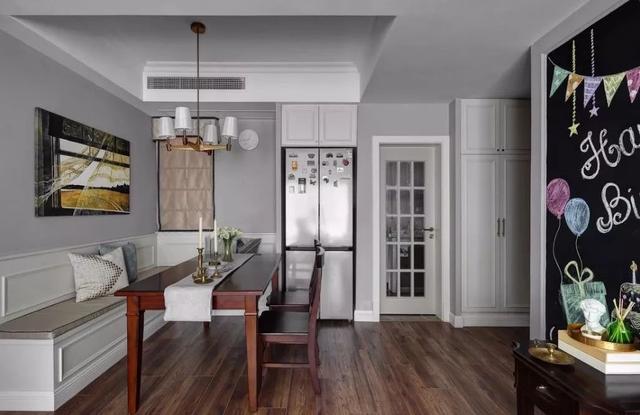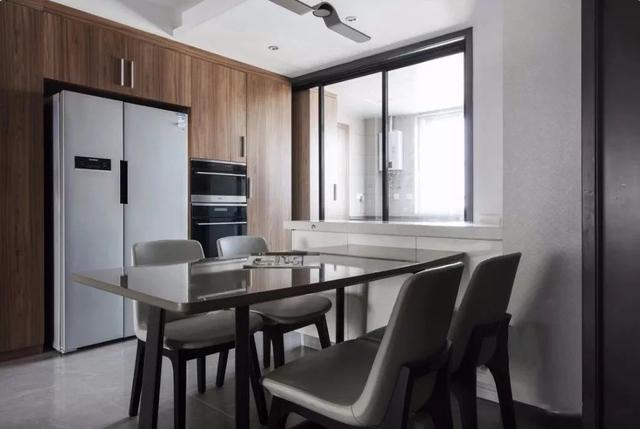 很多小户型的屋主会把餐厅做成卡座款式的,那么冰箱和餐边柜就可以和卡座结合起来,这样在同样的面积内,会拥有更多的储物空间。