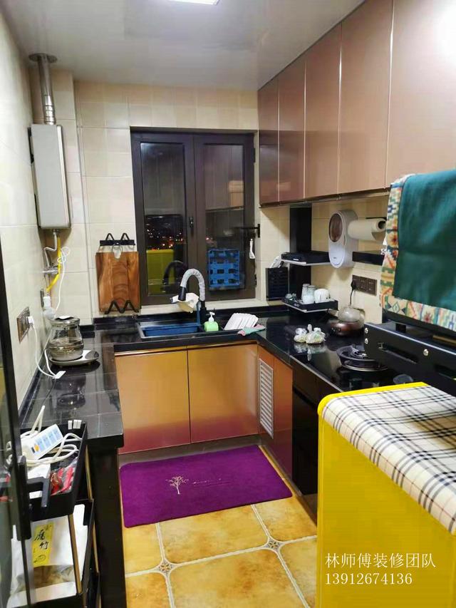 厨房,U型设计,储物能力超棒。而且墙面上还做了很多隔板收纳。干干净净,非常清爽。