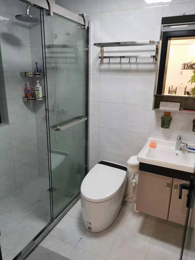 卫生间干湿分离,看起来洁净又亮堂,镜柜和浴室柜让洗漱用品和沐浴用品有序存放,浴室柜悬空设计,防止地面潮湿腐蚀柜子,也避免了卫生死角。