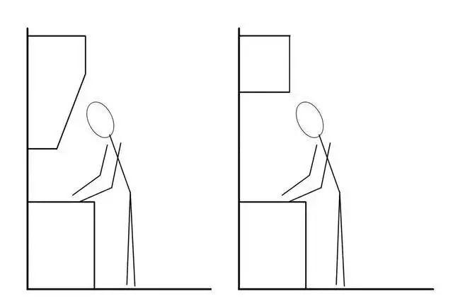 于是,有人便把厨房吊柜设计成倾斜式的了,就像一个直角梯形。除了和传统橱柜外形不太一样之外,柜门也不一样,倾斜式吊柜门几乎都是推拉门,而传统橱柜一般都是平开门。那么这样设计到底用意是什么?又到底好不好用呢?一起来看看下面的分析吧。