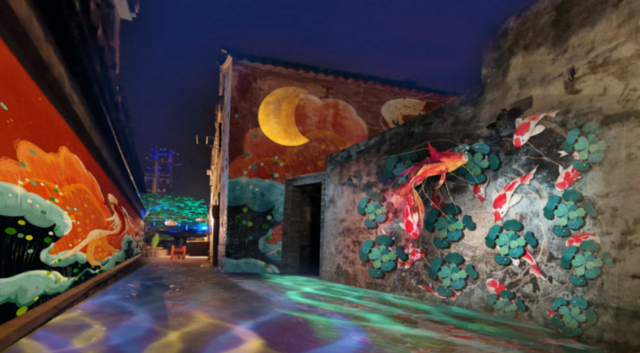在网红巷弄“花巷雨巷”互动光影秀的基础上