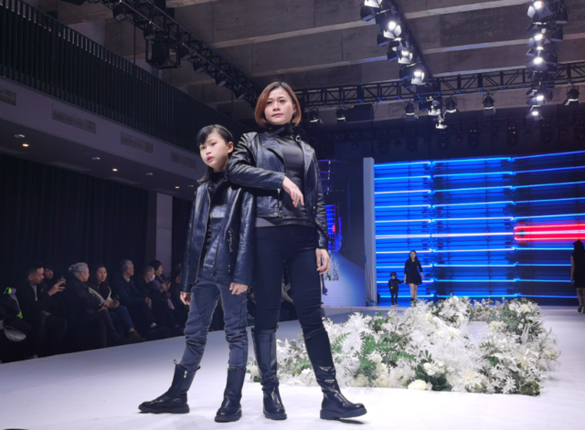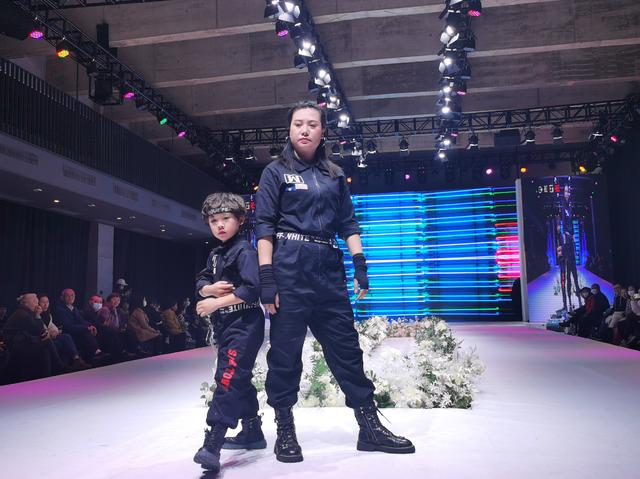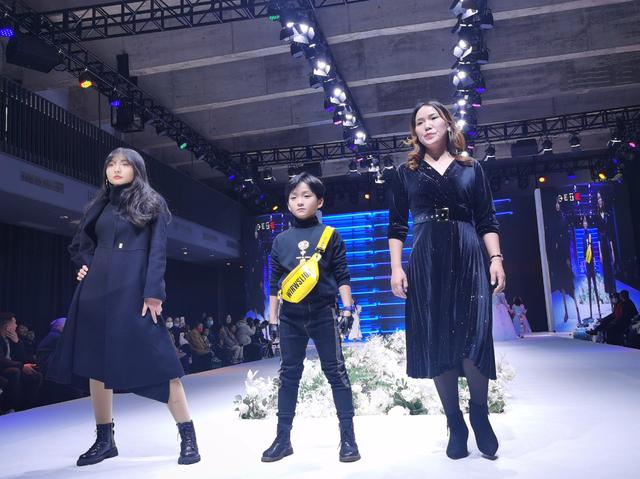 孩子和家长踏着自信的步伐,在舞台灯光的映照下成为T台上万众瞩目的焦点。