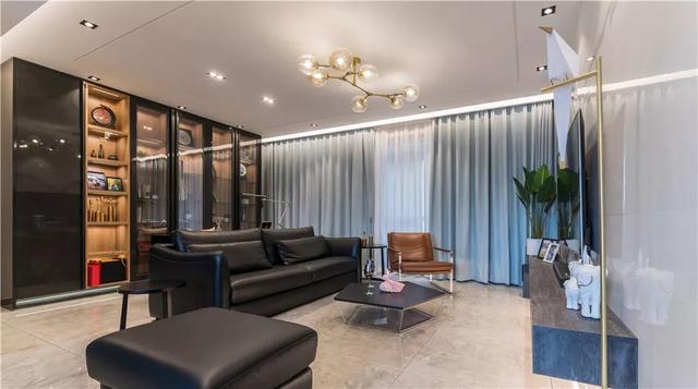 今天分享的是一套建筑面积125平米的现代简约风三居室案例,入户的玄关处就做了一面大理石背景墙,沙发背后的书柜、展示柜也非常的大气、时尚,让人羡慕不已,设计师把各个空间用不同的材质来演绎,非常独特。
