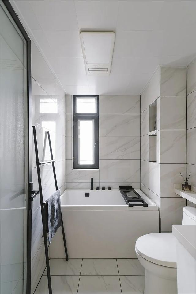 主卫空间稍显局促,但还是挤进了一个浴缸,给生活和思绪设计些许“留白”空间,业主提及,今后还能当作婴儿泳池。