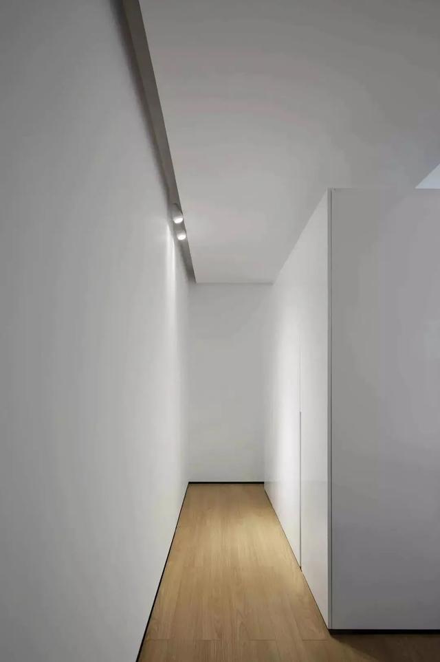 缺点:靠墙区域狭长,光线不足,建议在灯光设计上要注意。可以选用宽光束角、配光均匀、防眩的LED筒灯,大范围整体照亮衣帽间,消除阴影暗区。